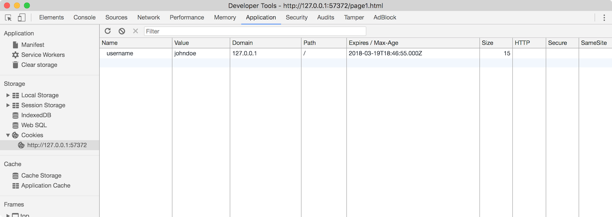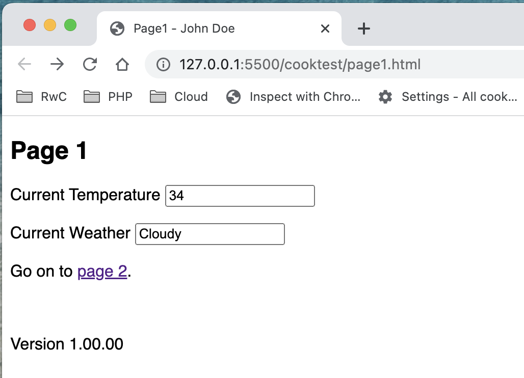 When testing, you must test with a web server. Whether that means a real webserver, or the simplified web server plugin for Visual Studio Code (Live Server). Important: when using VS Code, make sure the live preview of the page is actually working, and you see 127.0.0.1:xxxx (which means local host) in the address bar. If you see file:///, the setting and reading of cookies will not work. Screenshots below a correct live preview.